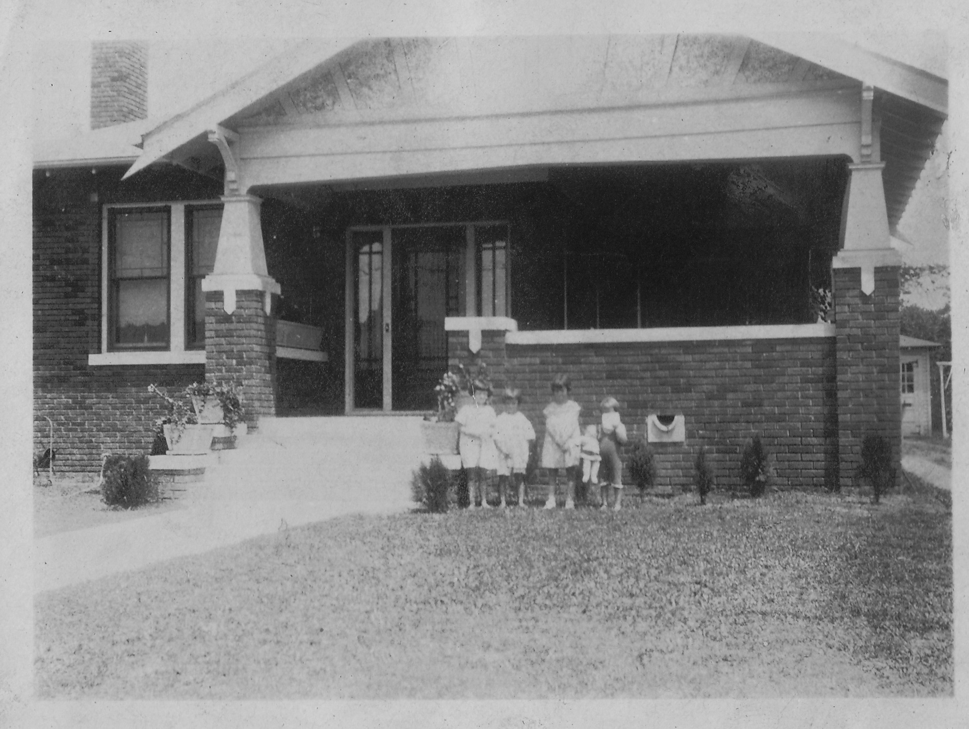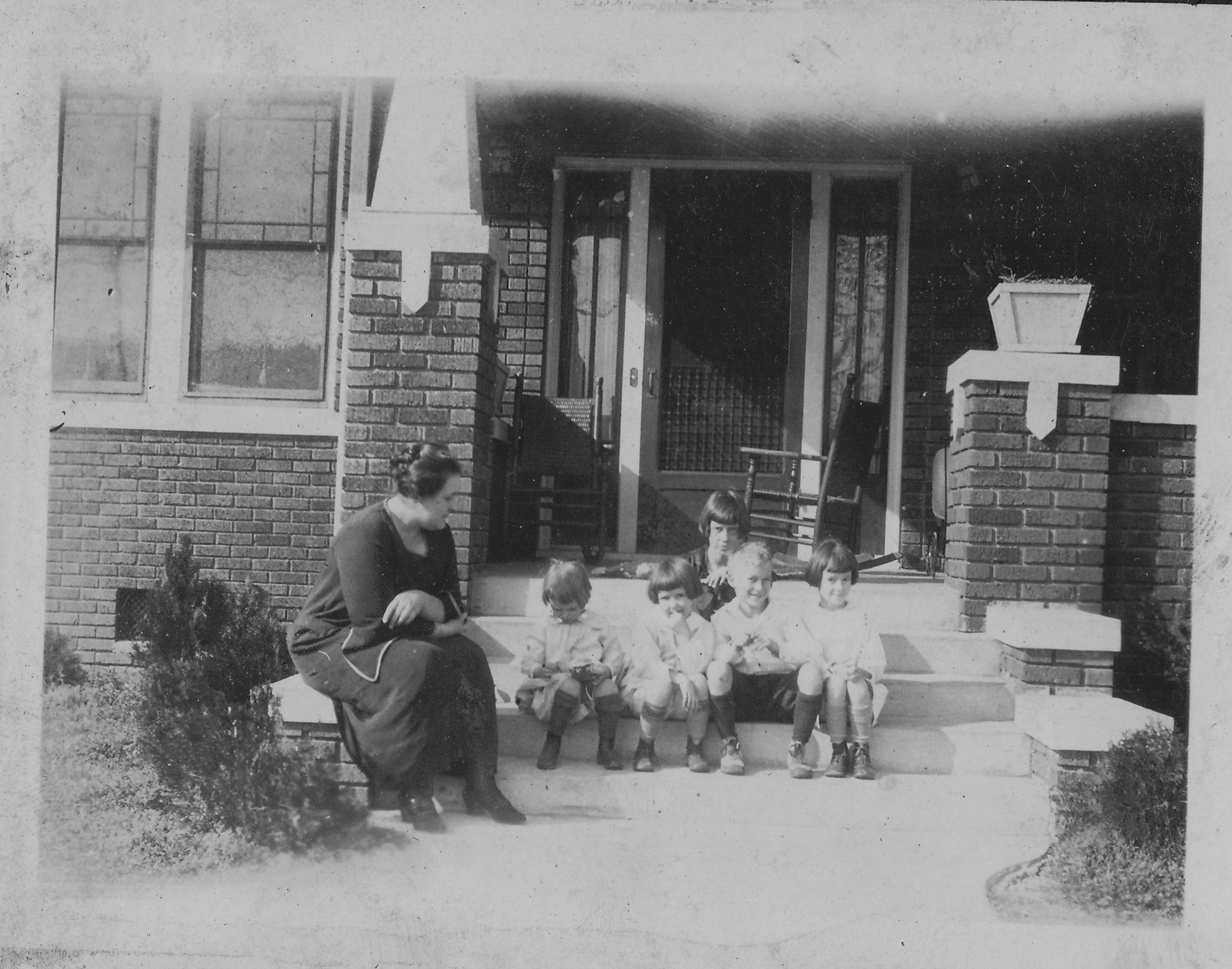 Mamie, Tiny and Sara on the bungalow steps. The door behind them was painted a dark color and had a screen door in place at that time. The screen door is at West, as well, and will anchor the entrance to the screened porch.