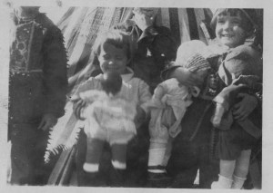 “The years we spent in the house on Strong Avenue were probably the happiest of our childhood. Mama and Daddy made a big production of every holiday and saw to it that we got everything that came to town, and the Christmases were wonderful with the living room always piled high with toys. Back then the stores did not carry toys all year. There were no discount stores, and the five and ten cent stores like Woolworth’s only carried small toys year round, mostly for around ten cents. We bought things like little folding fans, purses, celluloid dolls, little bisque dolls, paper book dolls, and that sort of thing when we went shopping with Mama. I was always the worst one about seeing something I just had to have and pulling on Mama and begging for it until she raised on eyebrow in a special way she had to let you know she meant business. Sometimes even that would not stop me, and I would be threatened with a good switching when we got home.
