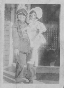 “We played paper dolls a lot, something which today’s children seem to have missed. We could hardly wait for the Sears catalog to come out so that we could start cutting them out. That was about our only source of men paper dolls. We could find plenty of ladies and children in magazines like Pictorial Review, Delineator and Ladies Home Journal, but we were always needing more men and boys. Mary and I would fight over the ‘snow babies,’ which were the babies in little knit snow suits. They were our favorites. We would file away our paper dolls in old magazines with the pages folded over to protect them. We tied strings on shoe boxes for cars and pulled them around. We made all sorts of furniture out of the cardboard which came in Daddy’s shirts from the laundry.