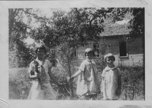Isn’t it odd how one side of your family (usually the maternal side, at least in our family) comes to dominate your memories and remain in your life forever? All of our lives, we’ve heard tales of Jessie’s family: Bigma, Bama, Big and Uncle Roy, the Stott cousins, etc. Howard’s family is like a shadow, flitting along the corner of Sara’s awareness and now lost for good. Until I read this part of her memoirs, I had no clue that she had five first cousins in Sledge. Where in the world did they go? And where was the house pictured above? The Evans girls certainly look as if they had endured a harrowing road trip and Sara seems downright dyspeptic, probably because Jessie had lined them up for Syrup of Pepsin the night before and the facilities in Sledge were not up to the standards of Strong Avenue.