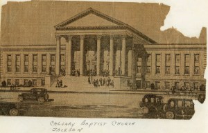 Calvary Baptist Church, West Capitol Street, Jackson. This must have been a newspaper illustration which Sara cut out and saved.