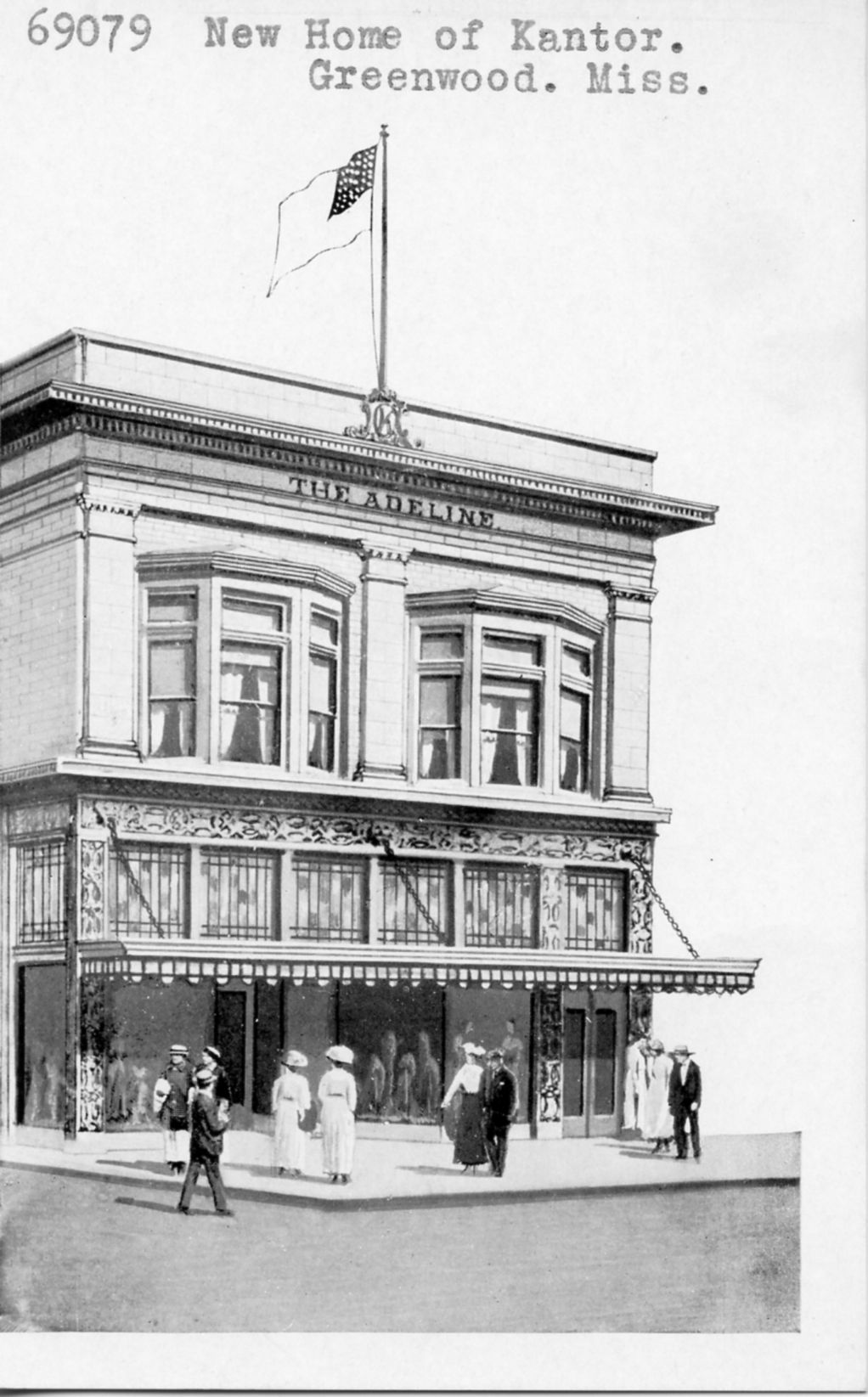 Kantor’s Men’s Store, Kornfeld’s, Orlansky’s, the Fashion Shop, Arenson’s Shoe Store, Diamond’s, and a number of smaller stores, also the Irving Hotel, Reiman Hotel (which later became the Greenwood Leflore Hotel) and a hotel where Russell’s Antiques is now [1990] which was the Weiner Hotel. Many had come from ‘the old country’ to America and had gone in business. Some could not even speak English when they came but quickly learned and the kids were some of the smartest in school.