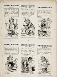 “Old Negro women would come to the door with a big flour sack slung over their shoulders filled with shelled peas or green beans. I don’t think they ever bought vegetables or butter or eggs from the store. There were several Negroes who roamed the streets and would stop by to see if you had any handouts or junk. One little wirey black woman was called ‘Aunt Aggie.’ It was she who first showed us sandwiches cut into two triangles, and we promptly called those ‘Aunt Aggie sandwiches.’ Then there was Hambone, a small little man who pushed a junk cart all over town. We always heard that J.P.Alley, the cartoonist for the Commercial Appeal for many years, modeled his Hambone character from our Hambone. His Hambone appeared every day in the paper with some clever comment in Hambone’s own dialect.”