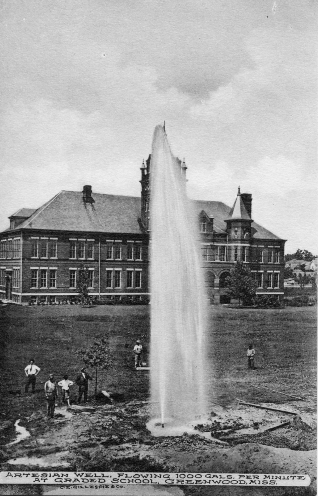 Artesian well gushing on the Davis School grounds. Photo courtesy of Donny Whitehead, aboutgreenwoodms.com