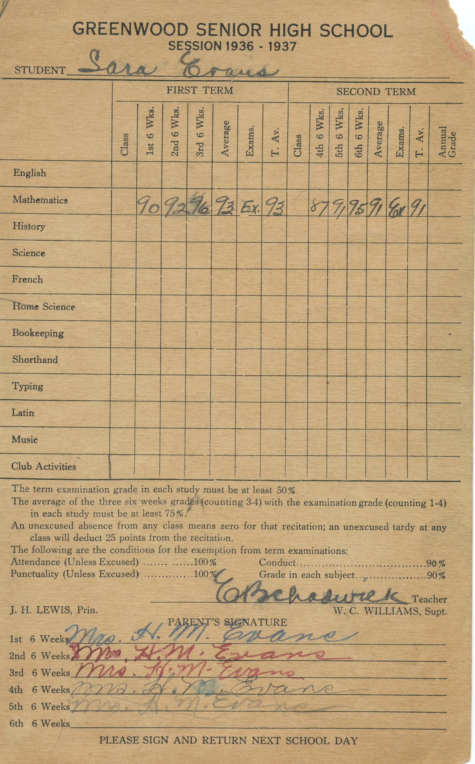 I love that old photograph of Miss Mary McCain. Look back at it and try to imagine her as anything but a crackerjack high school history teacher. She is so confident and so full of spunk and, according to Sara, she could make the driest epoch in American history jump off the pages and dance. Sara would take me over to visit with Miss McCain in her big white house on East Claiborne, when she was well into her 80s. She was so lively and so interested in everything, both in Sara’s life and mine. Books lined every shelf and she could easily discuss any topic that came up in conversation. I found her so fascinating that I began writing to her occasionally, and I’ll bet I still have the letters from her in a box somewhere. And I hope they’re still making teachers like Miss Mary McCain, who left her mark on  so many young Greenwood minds. Talk about priceless.