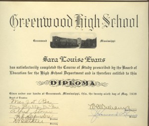 “In May of 1939 I graduated from Greenwood High School. There were a lot of parties, and it was an exciting time in our lives. That summer I spent a month in Jackson with Leota and was having so much fun I did not want to come home. Mrs. Taylor wanted me to stay with them and go to Millsaps College in Jackson, but Mama would not even talk about that.