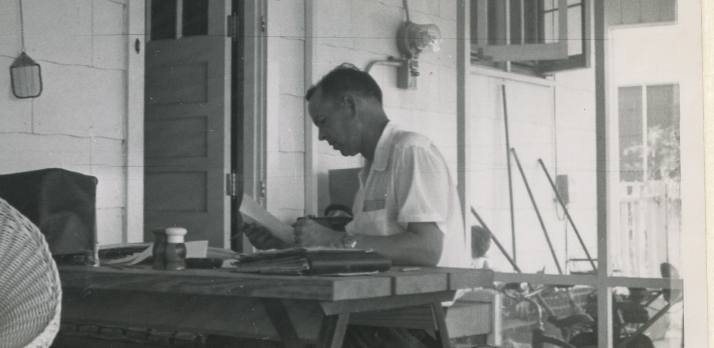 Russell, I suspect, bowed to her every wish in 1950, staying out of the way and letting her call the shots. But the back porch was his domain, and he did much of his paperwork out there when the weather was nice. He would sit at the far end with a transistor radio to listen to Ole Miss football games, and I well remember the night games, when you could see the red glow of his cigarette as the second half stretched into the evening. You could go crawl up in his lap but you couldn’t talk during the ballgames. I inherited that quirk: If you want to really get on my nerves, try talking to me during an Ole Miss game. I’ll be rude. Learned it from my daddy.