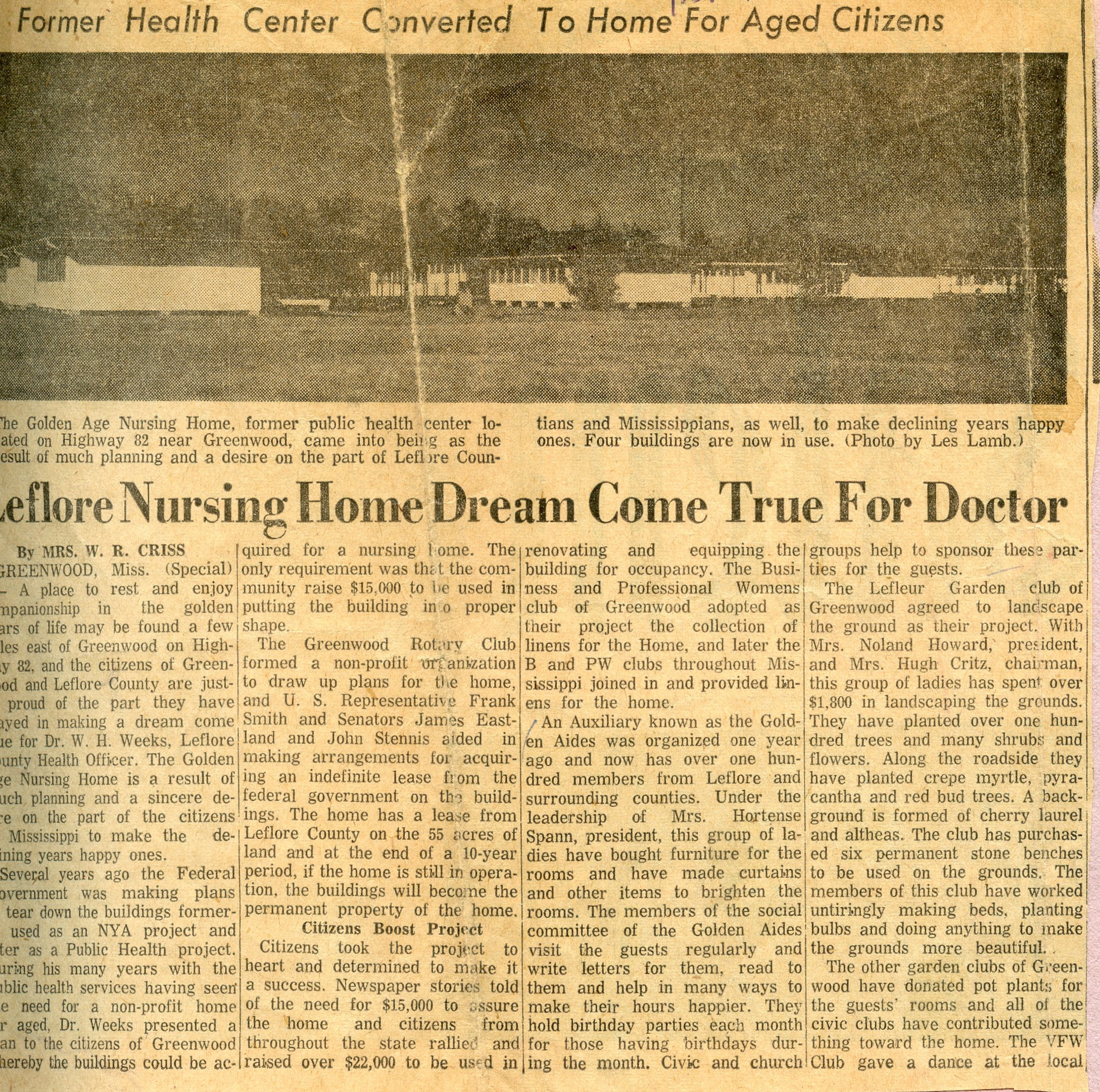 “In 1952 I decided I wanted to make some money so I wrote to the Jackson Daily News and asked them if I could be a correspondent for them and send in local news items. They agreed, and my first feature was about the Golden Age Nursing Home, which was new then. I made $15 that first month after not working for a couple of years I felt rich. My checks from them varied but were usually not more than $30, but at least I had some money of my own, and I got a big kick out of seeing my stories in the paper.