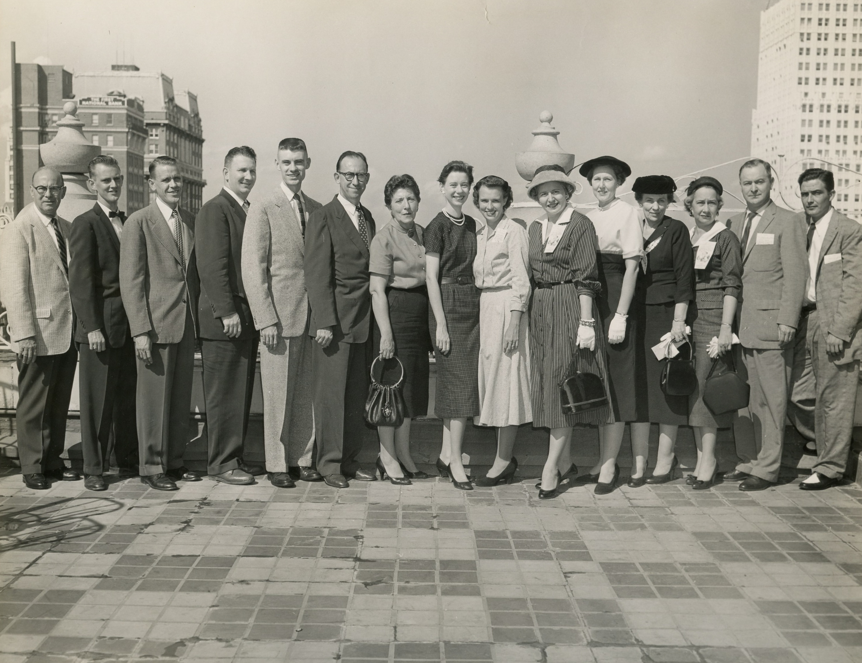 Commercial Appeal Tri-State Correspondents on the roof of the Peabody Hotel, late 1950s. Sara is in the middle, light dress.