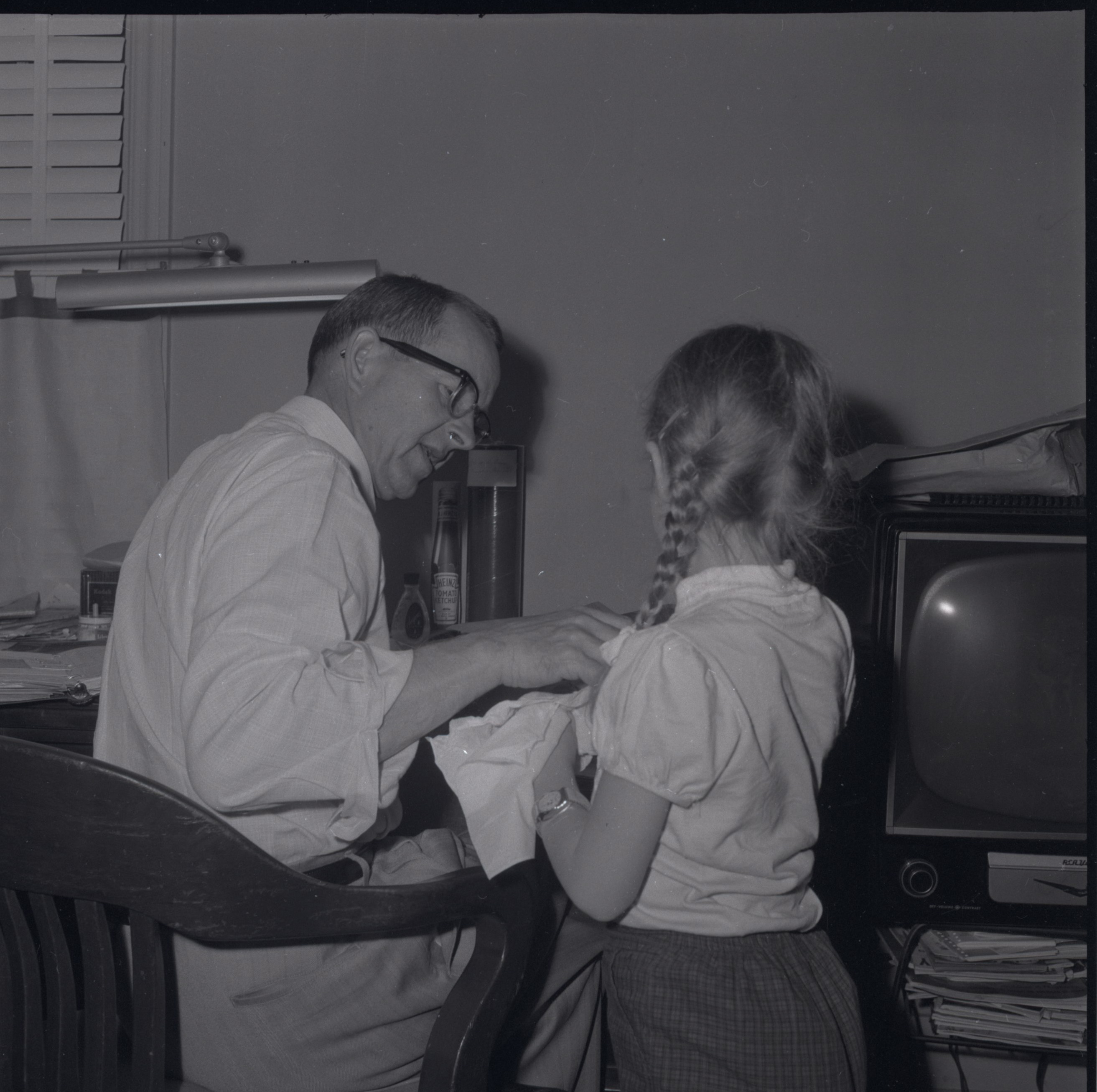 “In the summer of 1955 a fellow named Dan Farrell, head of Taylor Chemical Company of Aberdeen, North Carolina, was referred to me by the Chamber of Commerce to mimeograph some letters. They had set up an office at the Holiday Inn to sell cotton poison that summer. Then Farrell asked me if I would come out there and help them out. Since Georgia was here I told him I would help for a few days, which stretched into three or four weeks. He and the other men with the company were so nice, and I made enough money for us to buy our first black and white television set.