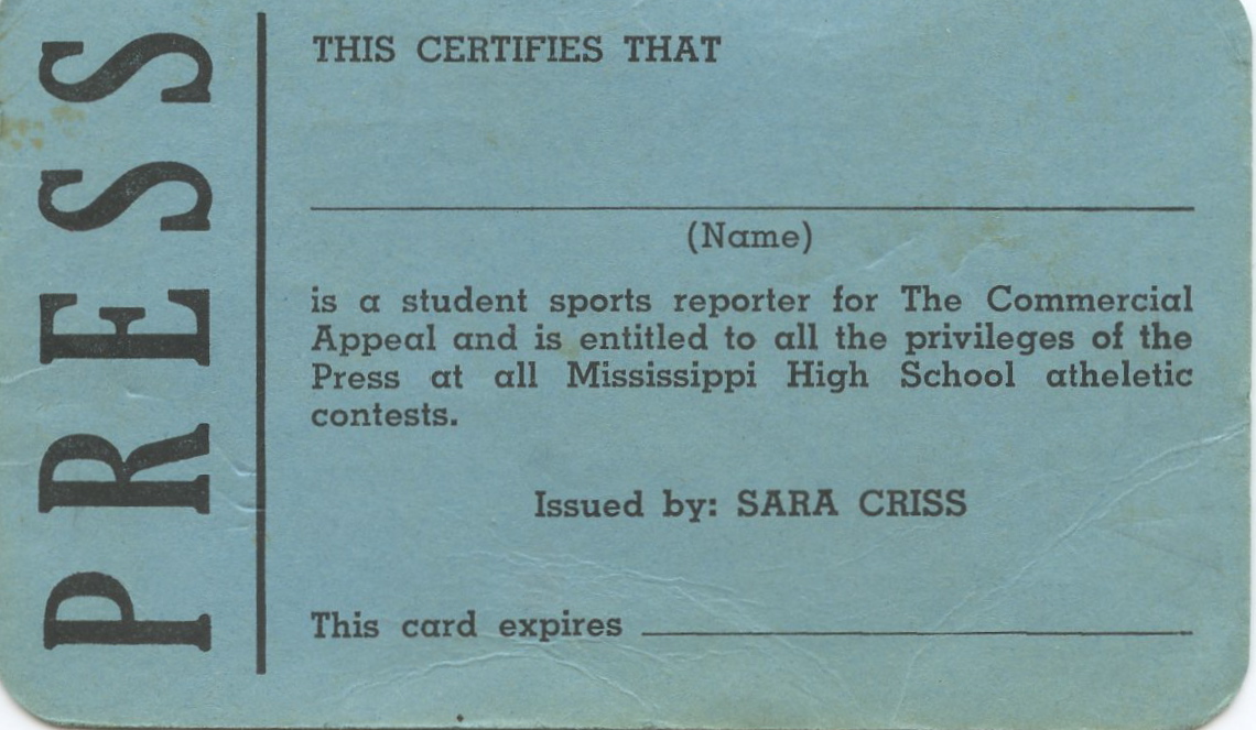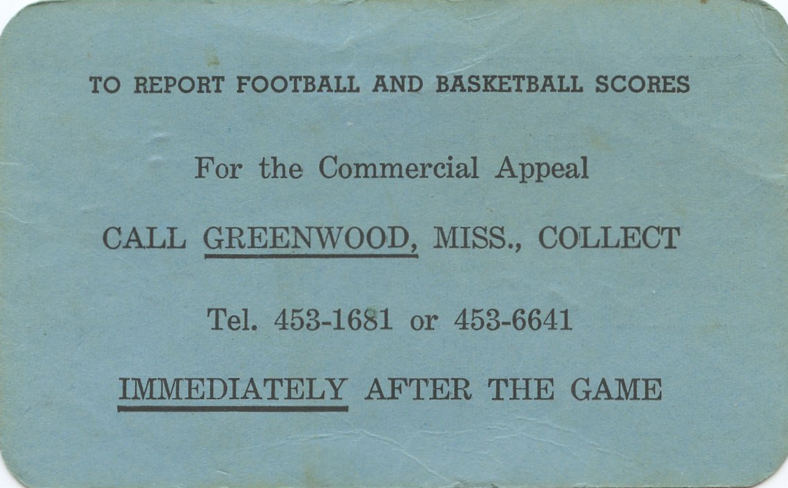 “Bill Street asked me if I would like to handle sports schedules and scores for all of North Mississippi and make a little extra money, so I agreed. I lined up student reporters in some 150-200 schools who called in their football and basketball scores right after the game. The paper paid for us to have an extra telephone put in so that Criss and I could both be taking scores at the same time. On Friday nights during football season and nearly every night during basketball season we sat in the kitchen taking calls until around eleven o’clock.”