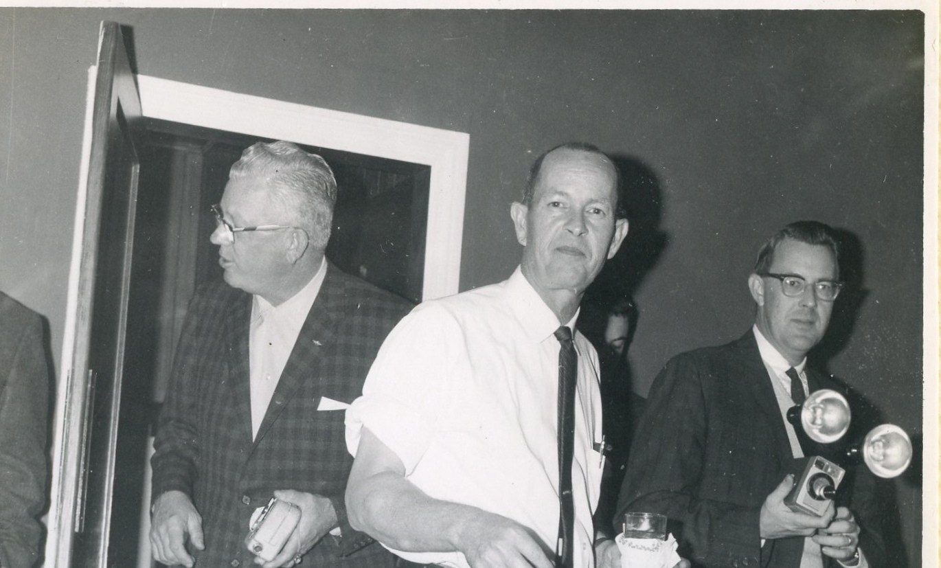 There is no way to adequately describe the Christmas Eve parties at 409 East Adams, which began in 1952 and grew and grew until the early ’90s.  Sara began decorating every inch of the house around Thanksgiving, and she met the Christmas tree truck in the Kroger parking lot (the old Kroger, behind Fincher’s) as soon as it rolled into town. Those poor truckers didn’t know what to do with this little lady who examined each tree as it was being unloaded, fingering the needles for freshness and potential to hold hundreds of ornaments. Russell (who knew better than to be off on a sales trip on this afternoon) would load the anointed evergreen into the back of the station wagon and off we would go with that year’s prize, plunking it into a bucket of water on the back porch until time to haul it into the designated spot in front of the living room window. It was always so tall and so full that Russell had installed an anchor in a ceiling beam to hold it up and it fell his job to crawl underneath daily and refill the water tank. He was so sick of the whole tree business by Christmas Day that the poor old dried up husk would be out in the ditch by lunchtime.