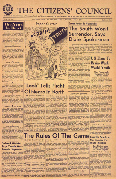 “The Citizens Council had an office in downtown Greenwood with Bob ‘Tut’ Patterson of Indianola, one of its organizers, in charge. He took his text on the literature being used by churches and even the Girl Scouts and the textbooks being used in schools. One day he showed me pictures of riots in cities in other parts of the country and would point to nice-looking people in the streets and warn me that this would happen in Greenwood and that it wouldn’t just be rednecks involved but probably some of my good friends.