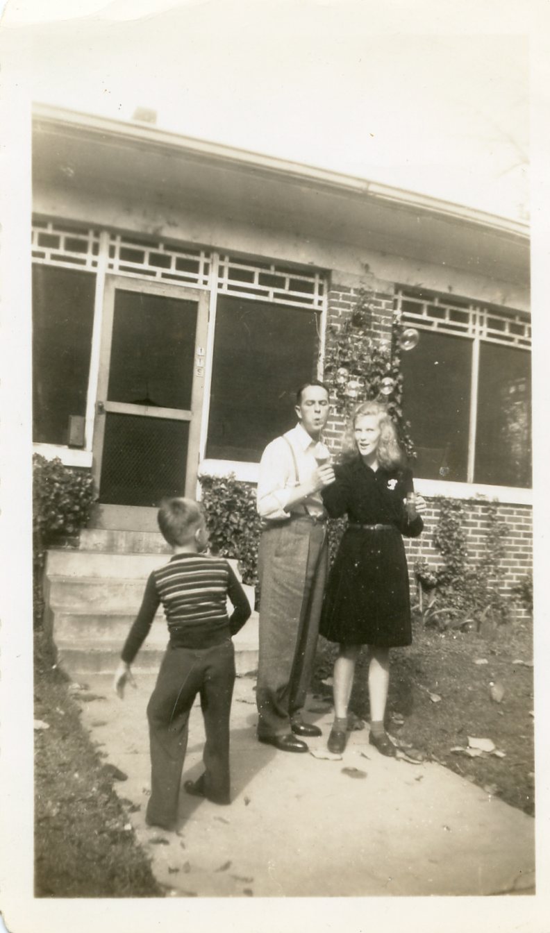 Now he’s made it back home, and home by 1945 was 115 East Washington, Greenwood, Mississippi. That was where all those letters from Sara and Tricia and Mamie and Son and Jessie and Big and Uncle Roy had poured forth for four long years, carried from that safe corner to Sicily and Anzio and Salerno and Paris and Dachau and Munich. He’s a much, much older man in this picture, though still only 28. But he could still blow bubbles with Tricia and a neighborhood kid, and that was the attitude he carried forward through his long and happy life.