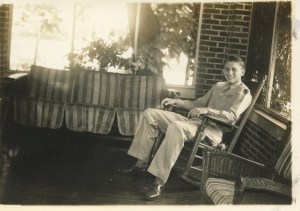 They had a son called Aggie who was an alcoholic. One summer afternoon when we were all on the porch, we looked across the street and here came Uncle Roy and Mr. Wilson from the funeral home, both of whom never took a drink, holding up Aggie in between them and taking him home, and I am sure giving him a good lecture on the evils of drinking all the way.”