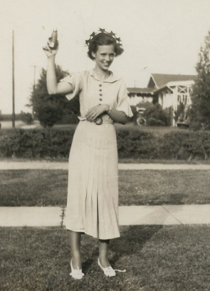 Just for the record, this is a cropped photo from the late 1940s. The original showed Sara and her Chamber of Commerce boss, Botts Blackstone, in a mega-posed shot, looking over some bit of local marketing. I know it’s the late 1940s, perhaps as late as 1950, because she worked there from 1942 until 1950 and didn’t have that modest wedding ring until January of 1947.